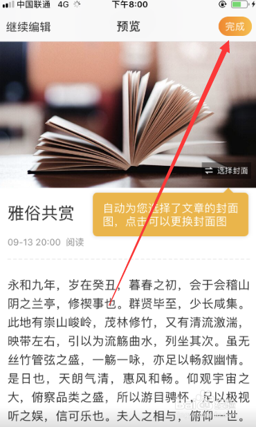 系统跳转后,进入预览页面,在页面中可以编纂图片。预览无误后,点击页面上方的“完当作”。