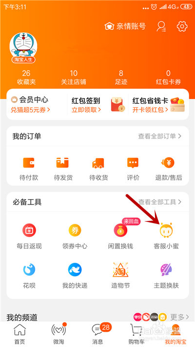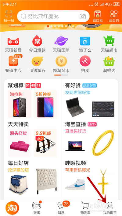 进入本家儿界面,点击右下角【我的淘宝】。