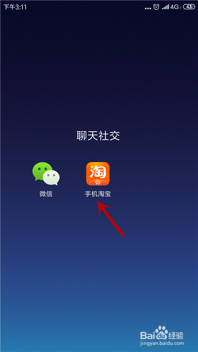 首先,在手机桌面上,打开手机淘宝应用。