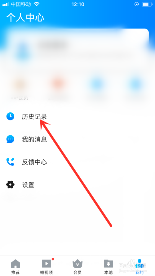 打开暴风影音中选择我的选项页面中点击“汗青记实”选项。