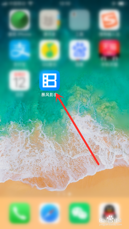 在手机中在桌面的环境下点击“暴风影音”。