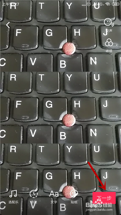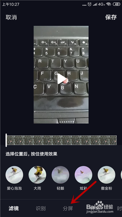 找到【三屏】特效,按住即可起头添加,完当作后点击【保留】选项。