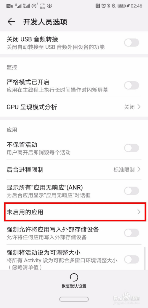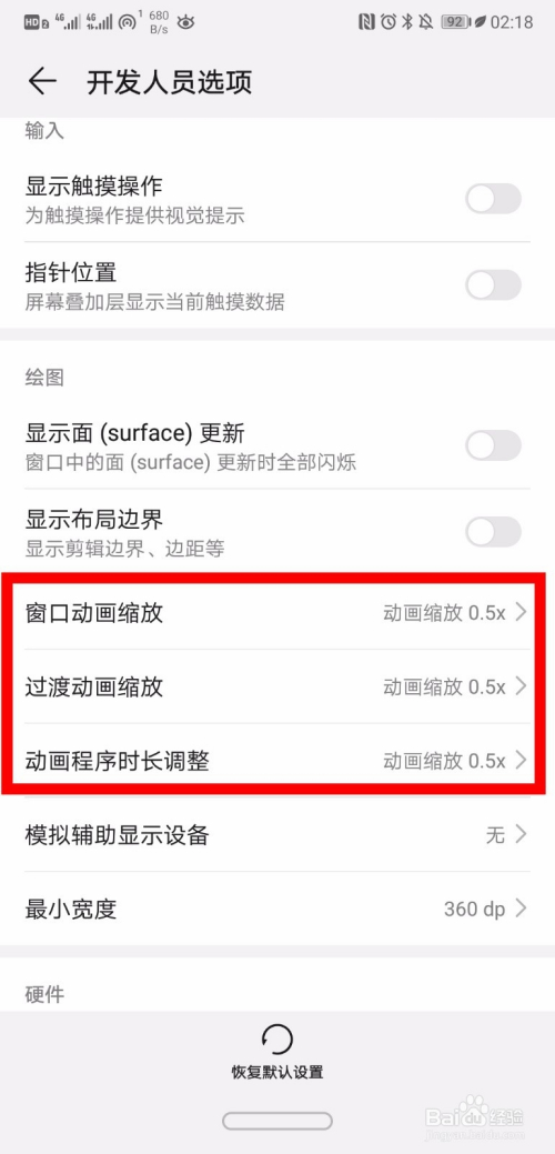 在【开辟者选项】里,我们打开【强制进行GPU衬着】和【强制启用4x MSAA】这两个选项,如图