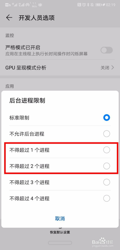 接着我们打开【后台历程限制】这个选项,如图