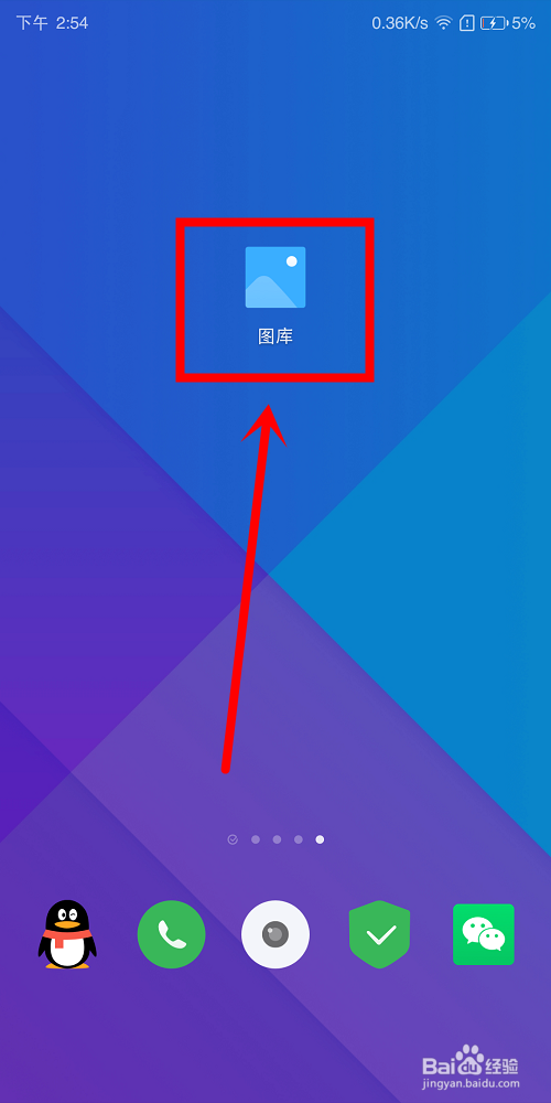 之后,我们再次返回到手机桌面上来,在该页面中找到图库这个软件,点击进入。