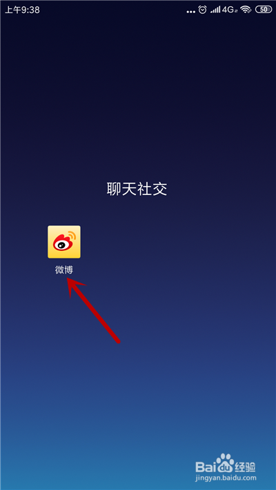 首先,在手机桌面,打开微博应用。