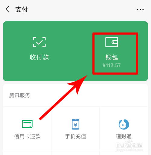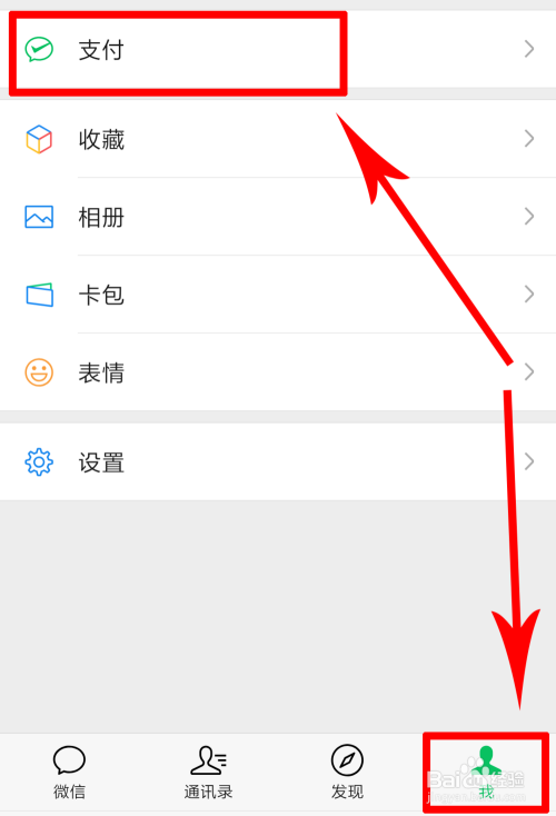 点击“我的”页面,并点击“支付”选项。