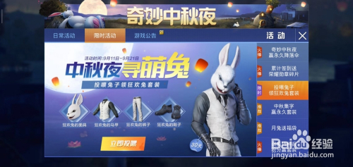 点击限时活动——投喂兔子领狂欢兔套装,点击进入;
