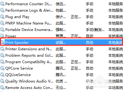 第四步,在办事列表中按照首字母挨次进行查找,找到“Print Spooler”这个选项,然后利用右键进行点击,并选择“启动”选项。