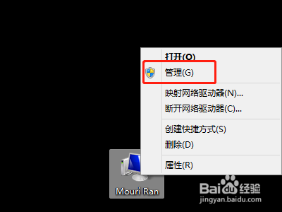 第一步,右键点击桌面的计较机,选择“办理”选项,进行下一步操作,进入计较机办理页面。