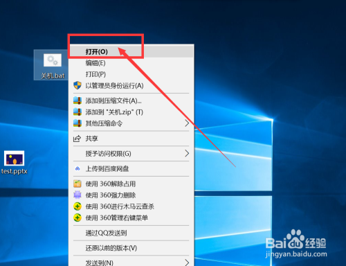 然后回到桌面,在文件上点击鼠标右键,选择“打开”,即可执行关机程序了。