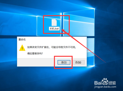 定名为“关机.bat”,而且把txt文件的后缀改为.bat格局,如图所示;