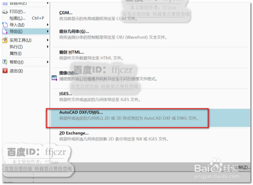 点开左侧的文件菜单,选择导出为AutoCAD DXF/DWG.