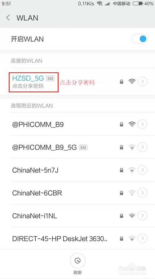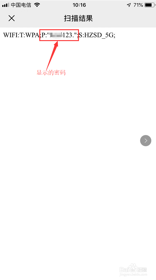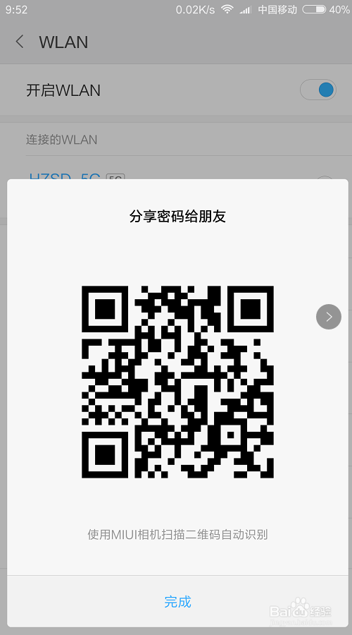 然后点击已经毗连上的无线名称下方的“分享密码”,接着就会弹出一个二维码,然后截图保留这个二维码。