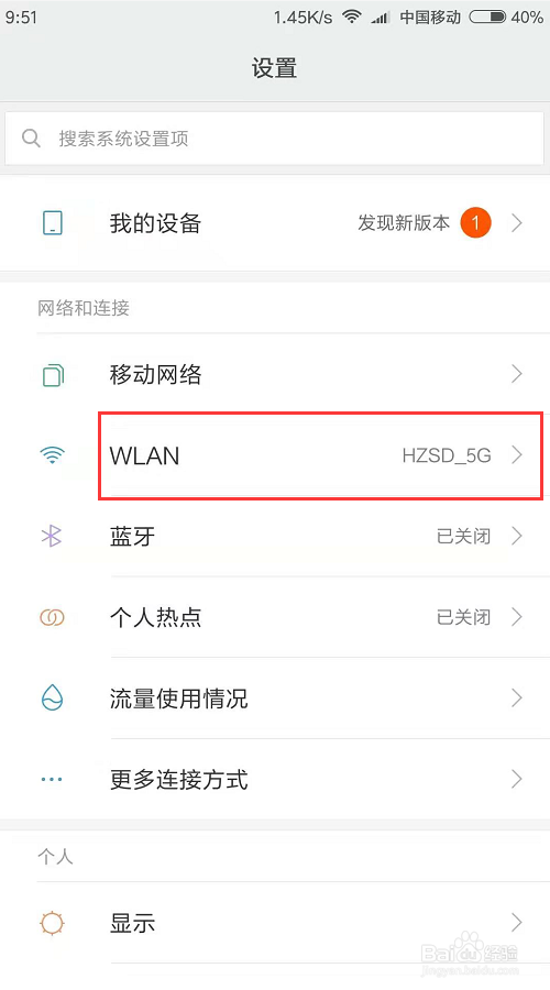打开手机”设置“----找到”WLAN“选项----轻触进入WLAN设置。