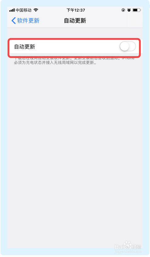 4.在【软件更新】界面,点击【主动更新】,然后在主动更新界面,封闭主动更新选项,完当作以上步调,即可封闭苹果手机系统更新。