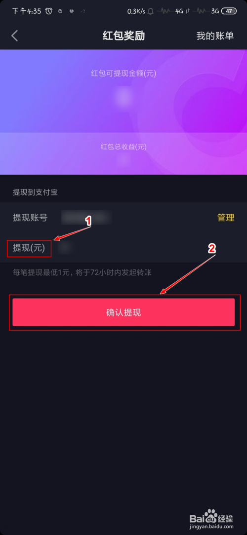 填入“提现金额”点击“确认提现”就完当作了,期待收条目