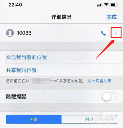 在短信列内外找到要屏障的号码,点击他的头像,然后点击信息;