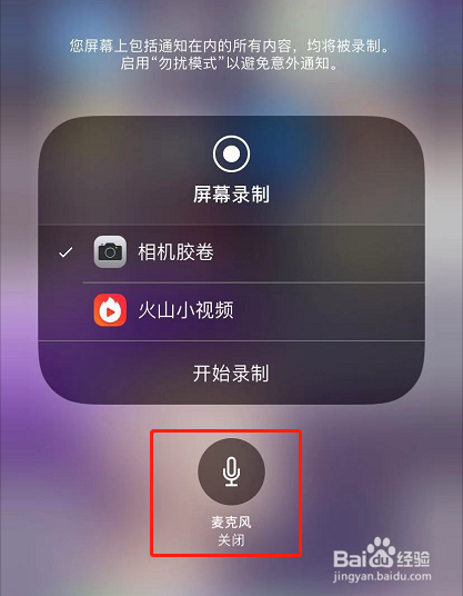 iPhone录屏时,麦克风默认是封闭的,只会录制手机内部的声音,不会录制外界的声音。若是需要在录屏的同时,录入外界的声音,如给视频配音,则需要打开麦克风。具体操作方式如下: