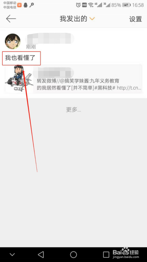 这样我们便可以看到手机新浪微博上我发出的评论。