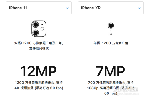 iphone 11后摄像头是双摄,iPhone XR是单摄。
