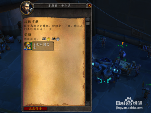 搞定之后,别忘了回到适才的NPC那边交使命,这样就可以获取了。其余的就要经由过程宿世界使命或侍从使命获得声望了。