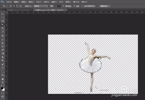 第三步:选择魔棒东西,将人物图片的布景区域选中,并按delete键删除。