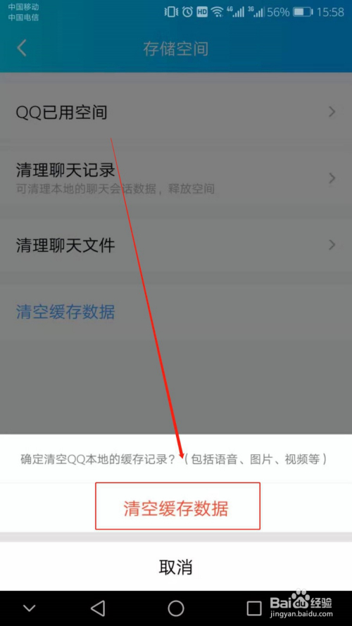 再次点击【清空缓存数据】,即可清空缓存数据,解决手机QQ信息延迟接收的问题。
