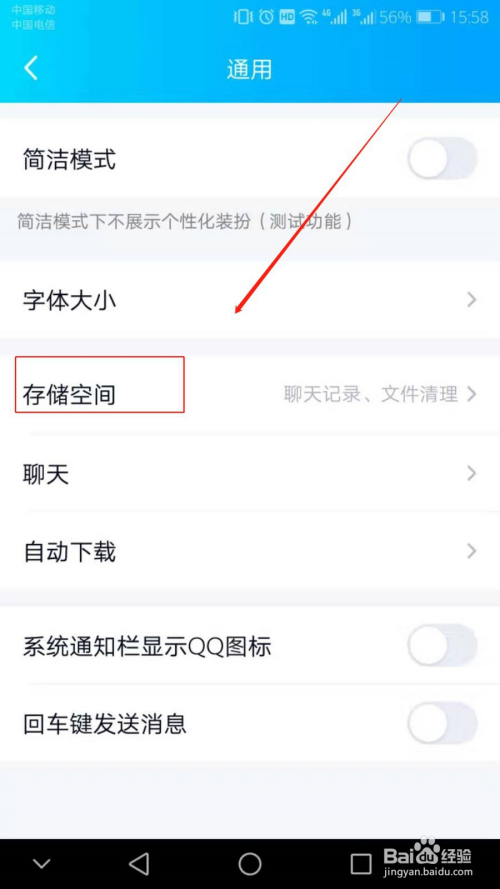 然后点击【存储空间】。