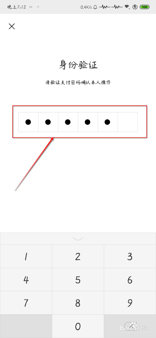 在“身份验证”下方输入“支付密码”