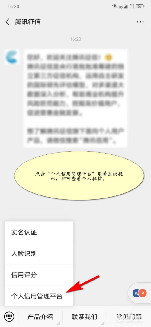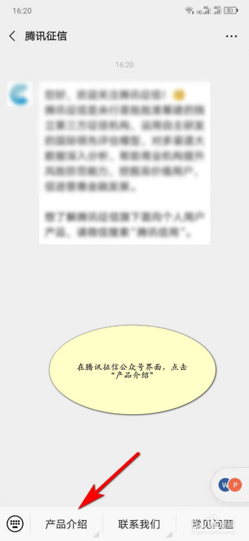 3、在腾讯征信公家号界面,点击“产物介绍”