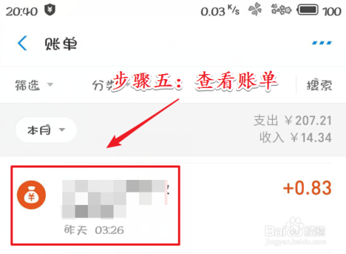 进入“账单”功能界面后,用户就可以在账单记实列表中,查看本身需要的买卖详情了。