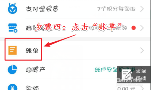 进入“我的”选项界面后,点击界面菜单列表中的“账单”功能。