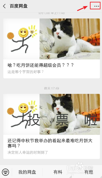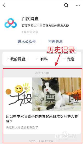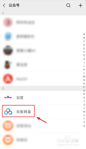 在公家号页面,点击一个微信公家号,好比:百度网盘。