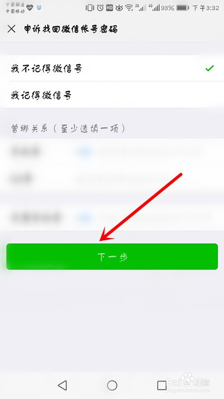 3、选择我不记得微旌旗灯号,填入曾绑关系,点击下一步。