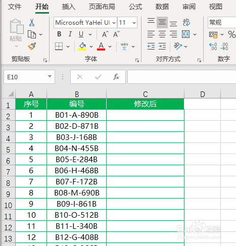 如下图,是小李录入的商品编号,此刻想要将商品编号后的字母B删除。