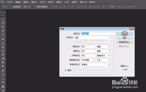 第一步:按Ctrl+N键,新建一个800*600的白色画布。