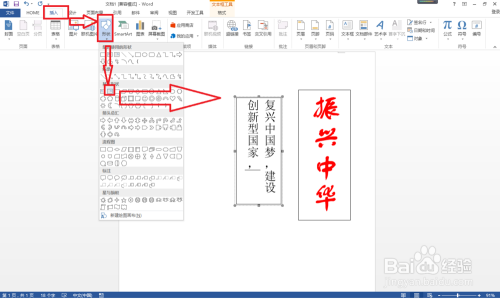 插入竖排艺术字:点击插入——艺术字标的目的下箭头——选择一种竖排艺术字类型——输入文字——点击确定。