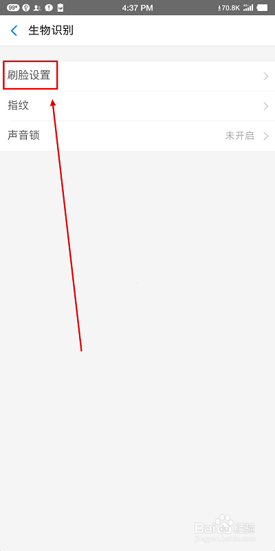 四、我们继续点击进入第一项“刷脸设置”进行更改。