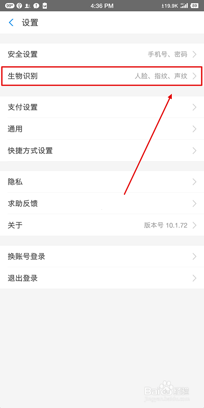 三、在设置界面中,我们找到“生物识别”这个设置,点击进入。