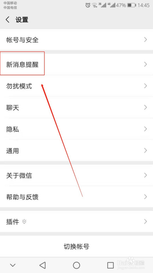 然后将接收新动静通知后的开关点击为开启状况。