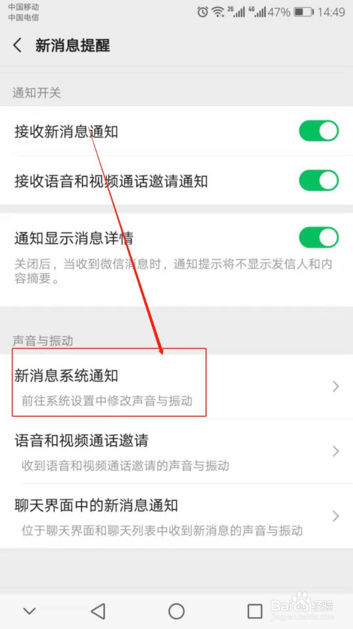 然后点击【新动静系统通知】。