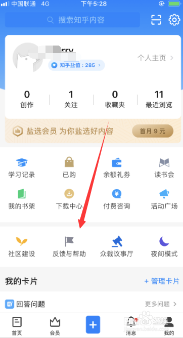 进入我的页面,点击页面中的【帮忙与反馈】。如下图所示