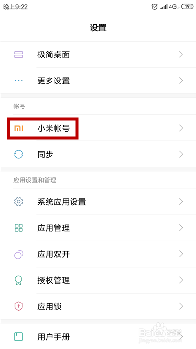 进入设置界面,点击【小米账号】选项。