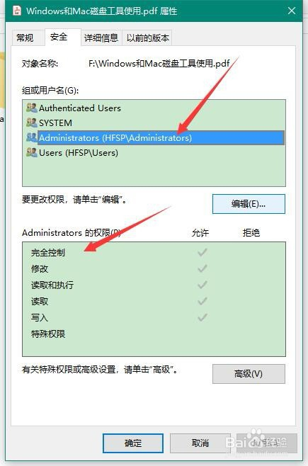 最后,选择添加了的超等办理员账户,将其权限设置为“完全节制”,点击确定即可解决拒绝拜候,没有权限查看该对象的平安属性的问题