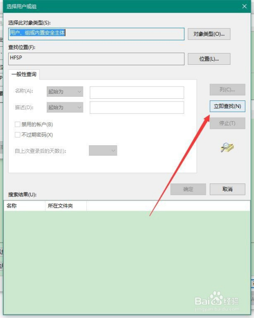 在之后,点击“选择用户和组”里的“高级”,点击“当即查找”按钮,找到电脑的超等办理员账户,点击确定后完当作添加