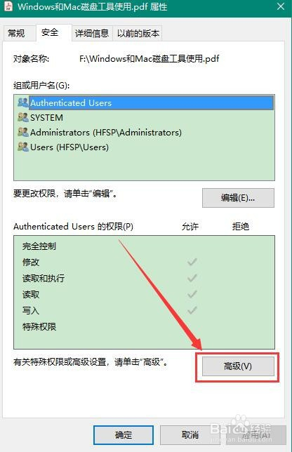其次,点击“属性”面板里的“平安”标签,点击“高级”按钮