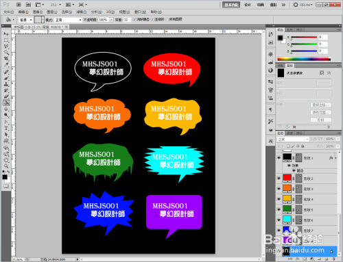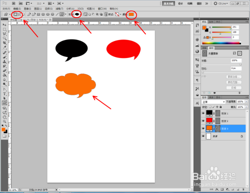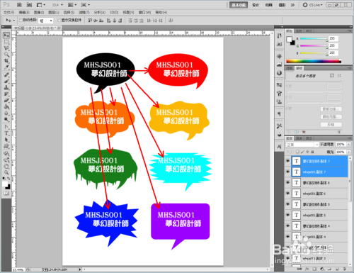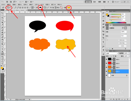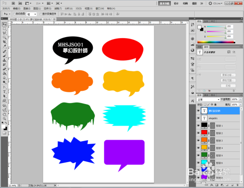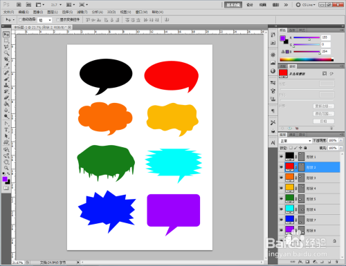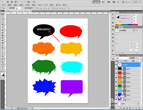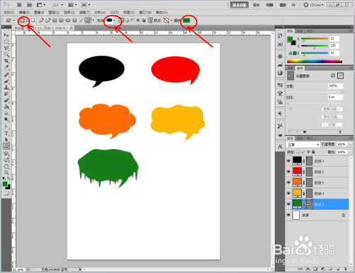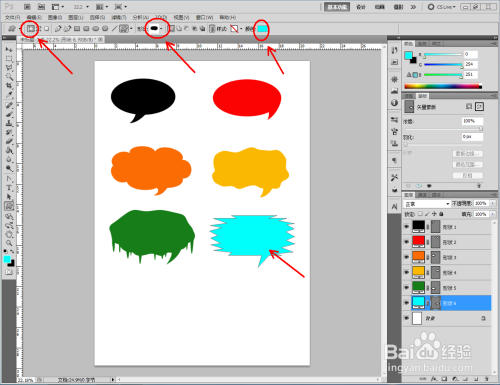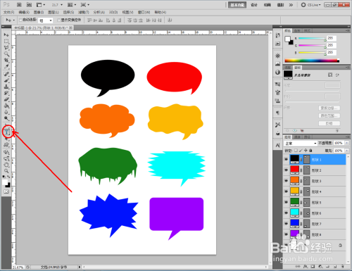 依次设置分歧的外形颜色和台词框,在作图区域绘制出多个台词框图案(如图所示);