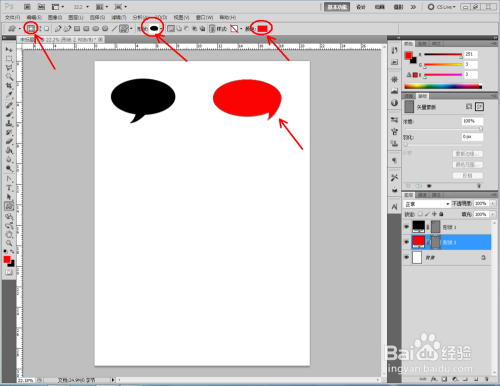 按图示点击【外形图层】并将外形颜色设置为黑色后,选择一个台词框外形,并在作图区域绘制出来。同样的步调,将外形颜色设置为红色,选择另一个台词框外形并绘制出来(如图所示);
