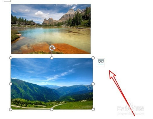 这时可以看到在word2019文档中已插入两个图片了,同时选择后面的图片,点击快捷东西栏上的“结构选项”图标。